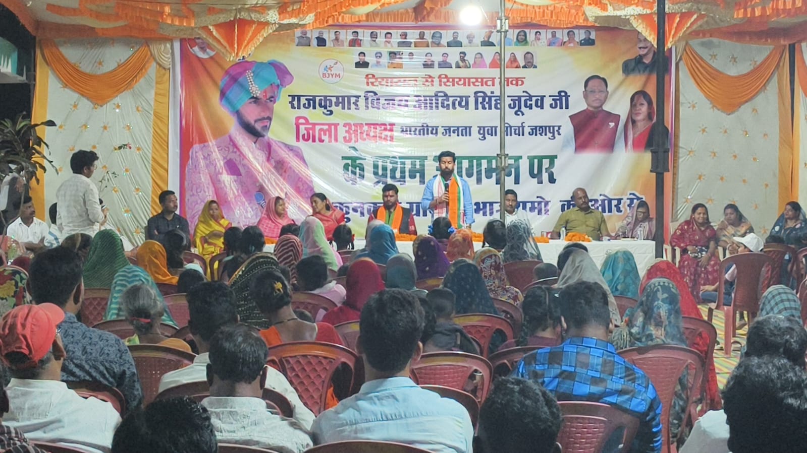 नारायणपुर में आयोजित कार्यक्रम को संबोधित करते हुए भाजयुमो के जिला अध्यक्ष विजय आदित्य सिंह जूदेव ने ग्रामवासियों के भव्य स्वागत और अभिनंदन के लिए आभार प्रकट किया।