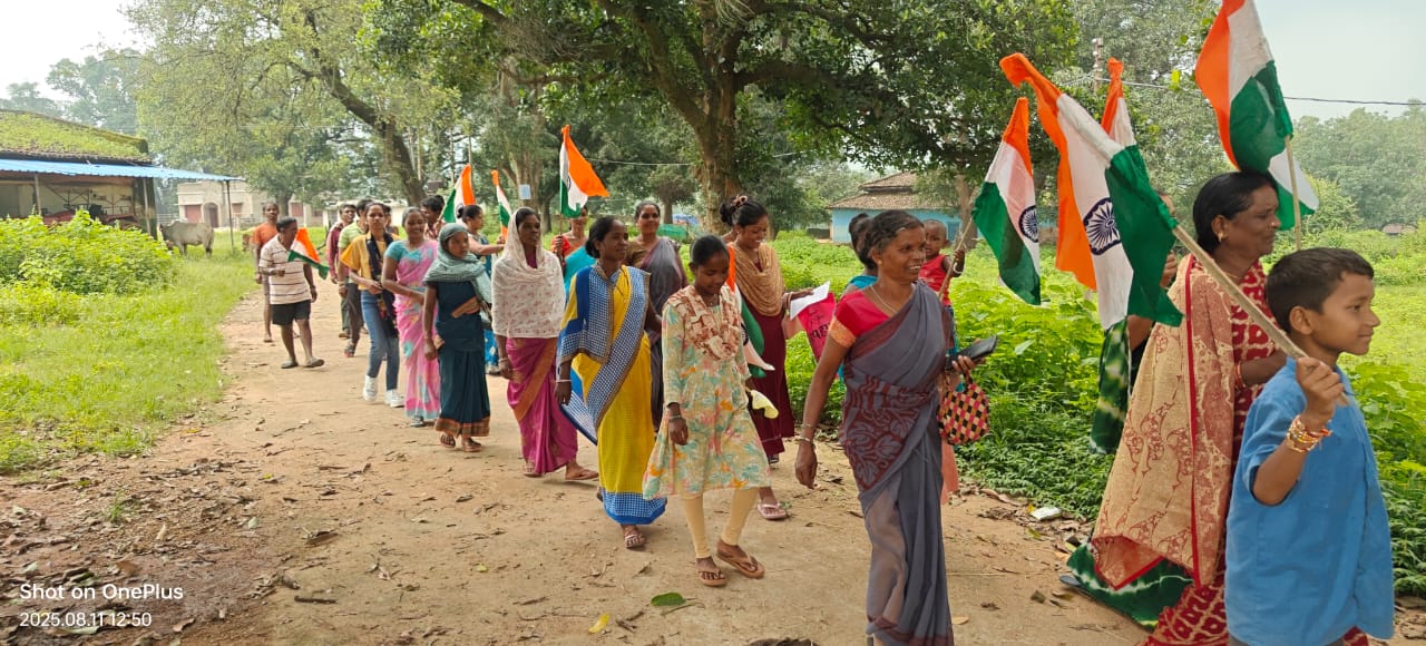 हर घर तिरंगा अभियान के अंतर्गत कुनकुरी ग्रामीण मण्डल के ग्राम पंचायत नारायणपुर में देशभक्ति और एकता का अद्भुत संदेश देने वाली *भव्य तिरंगा यात्रा* का आयोजन किया गया।इस अवसर पर ग्रामवासियों, जनप्रतिनिधियों और विभिन्न सामाजिक संगठनों के सदस्यों ने उत्साहपूर्वक भाग लिया। हाथों में तिरंगा लिए, देशभक्ति गीतों और नारों के साथ यात्रा ग्राम के मुख्य मार्गों से गुज़री।