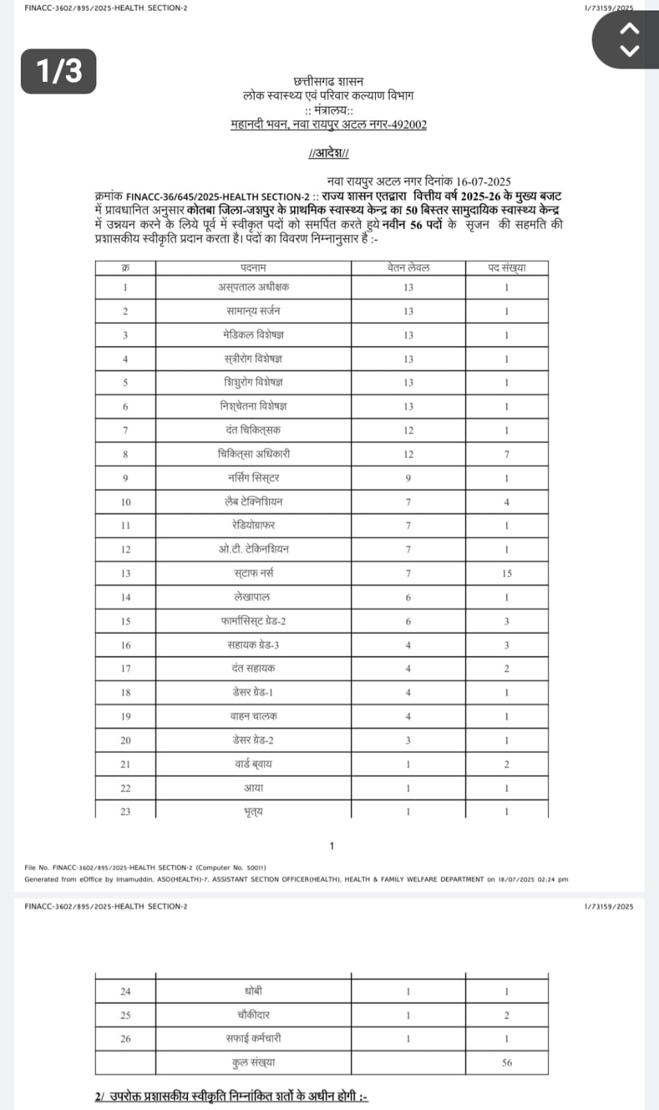 कोतबा में लोगों तक बेहतर सुविधाएं उपलब्ध कराने के लिए 56 पद स्वीकृत किए हैं। इनमें अस्पताल अधीक्षक, सर्जन, मेडिकल विशेषज्ञ, स्त्री रोग विशेषज्ञ, शिशु रोग विशेषज्ञ, दंत विशेषज्ञ, चिकित्सा अधिकारी, नर्सिंग सिस्टर, लैब टेक्नीशियन, ओटी टेक्नीशियन, स्टाप नर्स, लेखापाल, फार्मासिस्ट, सहायक ग्रेड 3, ड्रेसर, वार्ड बॉय, आया और भृतय के पद स्वीकृत किया गया है। शीघ्र ही उनकी पदस्थापना की जाएगी जिसमें लोगों को बेहतर स्वास्थ्य सुविधाएं उपलब्ध कराया जा सके।