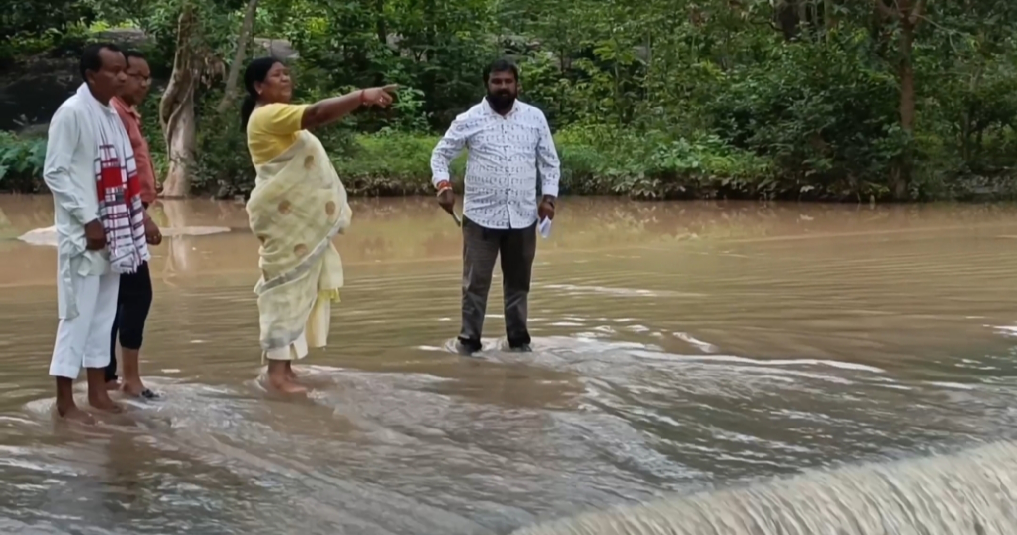 नारायणपुर :- बरसात के दिनों में टापू बन जा रहे डेंगुरनाला के बहाव का अवलोकन करने जशपुर विधायक श्रीमती रायमुनी भगत खुद पानी में उतर बहाव का अवलोकन की।इस दौरान उन्होंने मौके से ही वन मंत्री केदार कश्यप से दूरभाष में जानकारी देते हुए वस्तु स्थिति से अवगत कराई और मांग किया कि जल्द ही इसका त्वरित निराकरण किया जाये। वन मंत्री केदार कश्यप ने आश्वासन दिया है कि जल्द ही इस समस्या का निराकरण किया जायेगा।