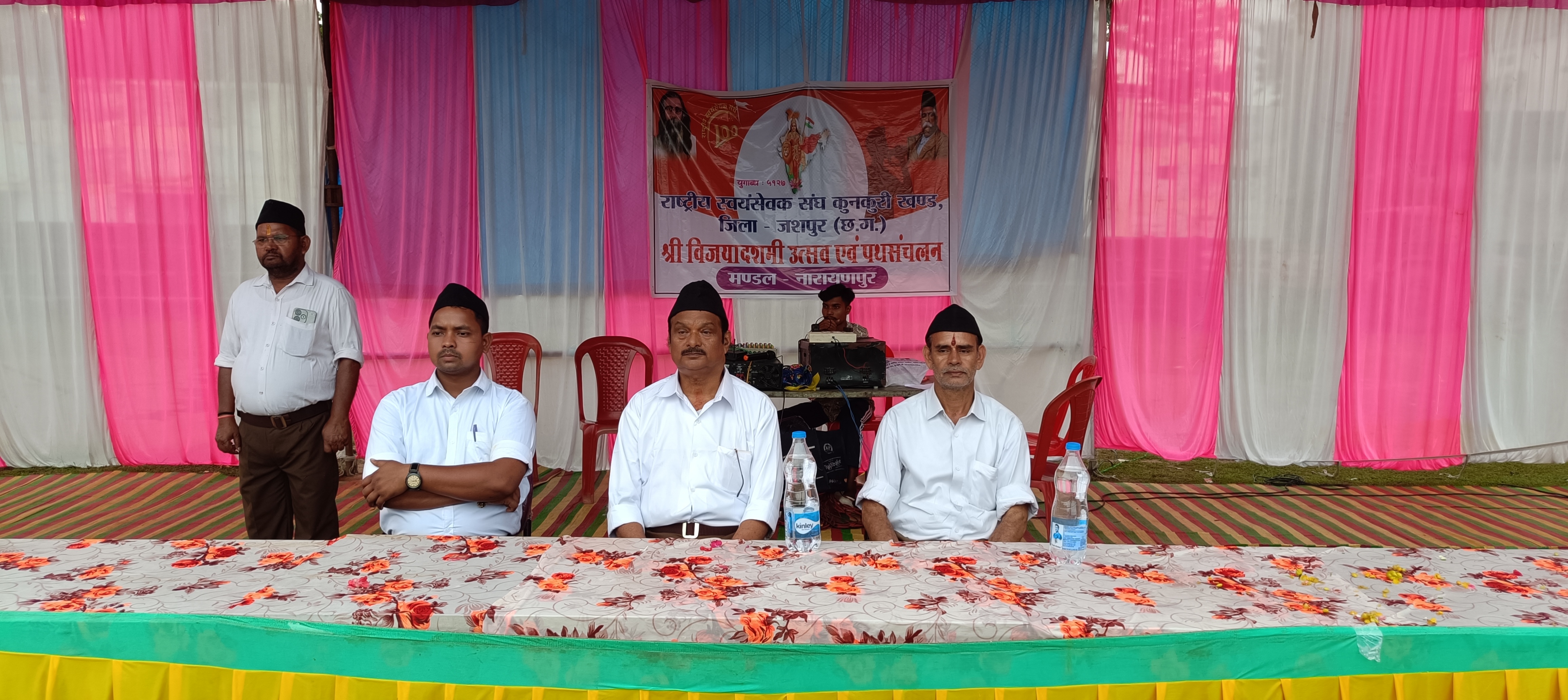 इस कार्यक्रम में संघ के जिला प्रचारक ऋषिकेश चक्रधारी ने मार्गदर्शन करते हुए कहा कि राष्ट्रीय स्वयंसेवक संघ की स्थापना विजयादशमी के दिन वर्ष 1925 में डॉ. हेडगेवार ने की थी।भारतीय समाज के उत्थान और सशक्तिकरण में संघ ने महत्वपूर्ण योगदान दिया है। संघ राष्ट्र की एकता, अखंडता और समृद्धि के लिए निरंतर कार्य करता आ रहा है। नागपुर से प्रारंभ हुआ यह संगठन आज विश्व का सबसे बड़ा स्वयंसेवी संगठन बन चुका है। संघ ने समाज के हर वर्ग को संगठित करने और राष्ट्रहित में खड़ा करने का कार्य किया है। 1947 में देश की आज़ादी के बाद संघ ने राष्ट्र निर्माण के विभिन्न कार्यक्रम में योगदान दिया और समय-समय पर सेवा कार्यों के माध्यम से समाज के हर वर्ग को साथ लिया।संघ का मूल ध्येय है हिंदू समाज को संगठित करना और राष्ट्र को परम वैभव तक ले जाना। शाखाओं के माध्यम से शारीरिक, बौद्धिक और नैतिक प्रशिक्षण देकर संघ स्वयंसेवकों में अनुशासन, त्याग और सेवा की भावना का संचार करता है