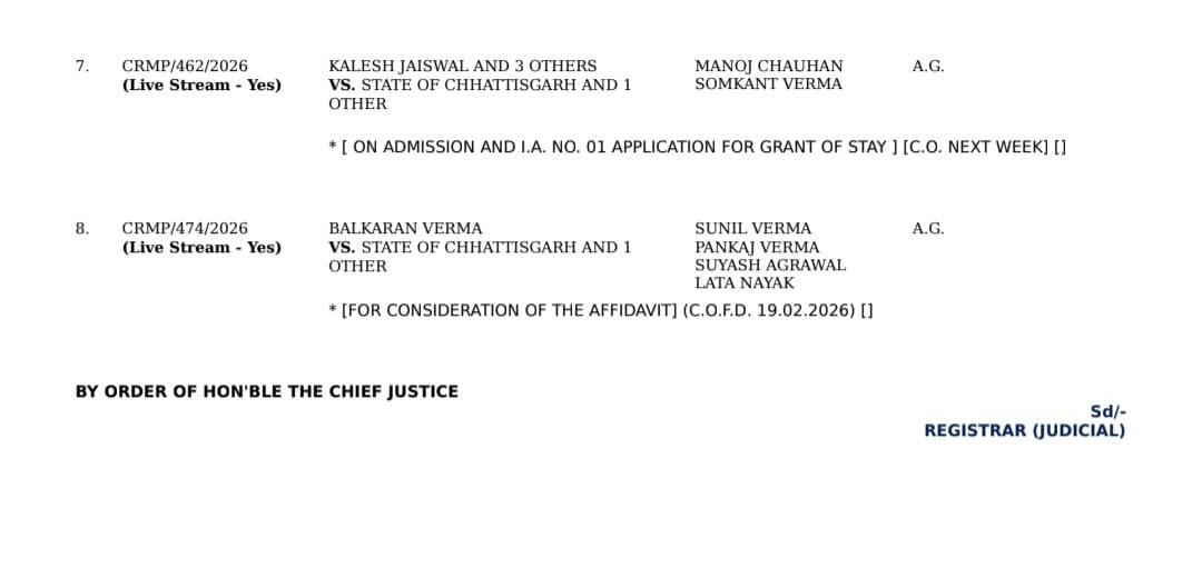 जशपुर, 19 फरवरी 2026। फरसाबहार न्यायालय परिसर में हुए मारपीट और धारदार हथियार से हमले के मामले में महत्वपूर्ण कानूनी घटनाक्रम सामने आया है। उच्च न्यायालय बिलासपुर ने अधिवक्ताओं के खिलाफ दर्ज एफआईआर और आपराधिक प्रकरण पर अंतरिम रोक (स्टे) लगा दी है। साथ ही थाना फरसाबहार और शिकायतकर्ता को नोटिस जारी कर जवाब मांगा है।